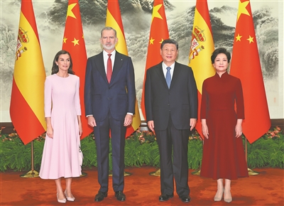 費利佩六世表示,很高興在西中全面戰略伙伴關系20周年之際對中國進行國事訪問。西班牙同中國的友好交往源遠流長,建交以來,兩國始終相互信任、相互尊重,致力于共同發展繁榮。中國的發展成就舉世矚目,令人欽佩,特別是在脫貧和綠色低碳發展方面的成功經驗值得借鑒。西班牙政府堅定不移奉行一個中國政策,支持維護國家領土完整,愿同中方推動兩國全面戰略伙伴關系不斷向前發展,為兩國人民帶來更多福祉,為世界和平穩定作出更大貢獻。中國企業投資有力促進了西班牙經濟發展和綠色轉型。西方愿同中方保持密切交往,把握中方實施“十五五”規劃帶來的重要機遇,加強經貿、工業、科技、綠色能源等領域合作。感謝中方對西班牙實施免簽政策,愿密切文化、語言、旅游領域交流,增進人民友好。歷史只能向前,不能倒退。西中兩國在很多國際問題上理念高度一致,都支持多邊主義,支持通過對話協商解決爭端。西班牙高度贊賞習近平主席提出的四大全球倡議,愿同中方共同應對國際形勢中的不確定性,維護國際貿易秩序,促進全球經濟穩定發展。